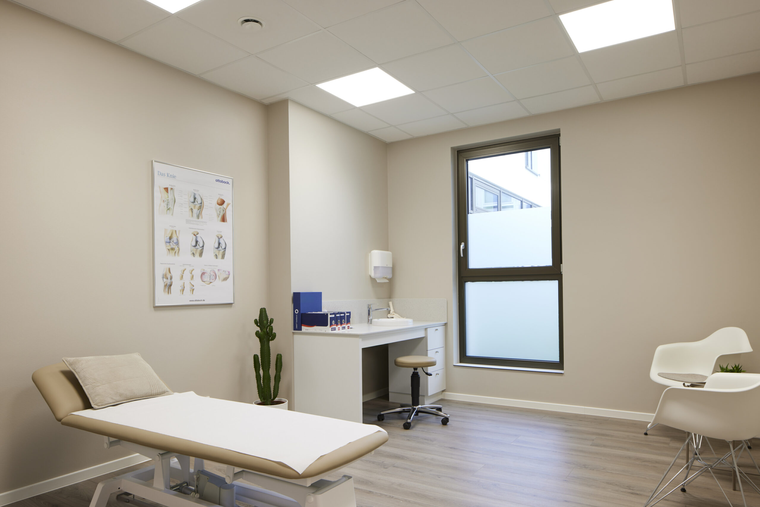 Die von archwerk gestalteten Praxen zeichnen sich durch eine harmonische Farb- und Materialauswahl aus, die Räume mit hoher Aufenthaltsqualität schafft. Hierbei kommen ebenfalls natürliche Materialien wie Holz zum Einsatz, die im Bezug zum Gesamtkonzept des Gebäudes stehen.